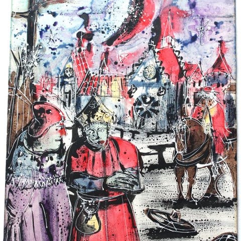 Vanni Viviani "Interno" 1965. Olje og blandeteknik på træpanel, cm 80x70. Værket underskrevet. Autentificeret ved foto. III. Pris S. Margherita Ligure. Historisk værk.