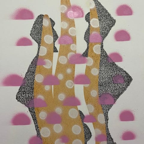 Dette værk er et skulpturelt vægstykke, der befinder sig mellem reliefsskulptur og maleri i blandede medier. Det centrale element består af kamottekeramik, et materiale kendt for sin styrke, taktile overflade og udtryksfulde potentiale. Relieffen af keramik kombineres med lagdelte akrylteksturer og
