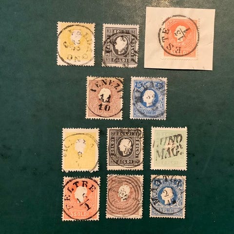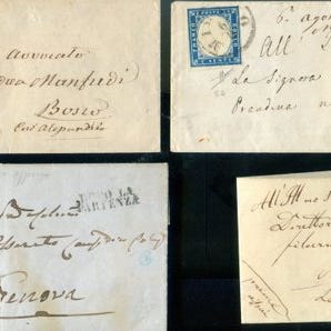 Syv breve fra de Antikke Italienske Stater, 1850–1862, med titel 'Stupende lettere Antichi Stati Italiani', brugt til post og med certifikat. Klik på den blå "gå til varen" knap, for at købe eller byde på denne vare. Den samlede pris vil blive vist inden du afgiver dit bud.