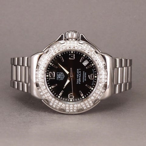 Tag Heuer Formula 1 Gulf Specialudgave, Ref. CAZ101AT, 43 mm rustfrit stål kvarts kronograf med blå urskive, blå emaljeret tachymeterlænken, stålrem længere end 200 mm, vandtæt til 200 m, leveres med originalt etui og papirer. Klik på den blå "gå til varen" knap, for at købe eller byde på denne vare. Den samlede pris vil blive vist inden du afgiver dit bud.
