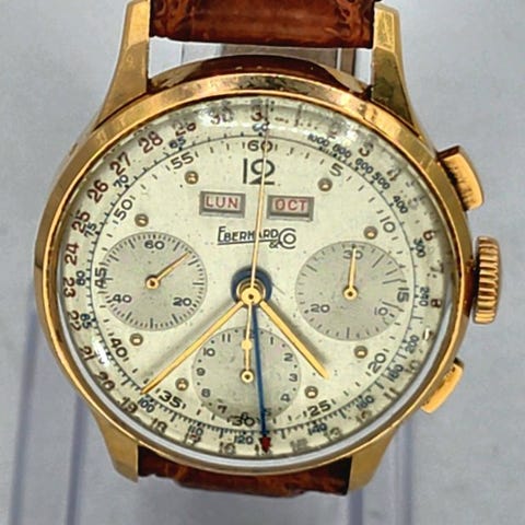 Minerva stålchronograph, reference 1327, omkring 1950’erne, håndoptrukket Minerva-caliber 13/20CH, 36 mm stål-kasse, læderrem, i meget god stand med mindre slid. Klik på den blå "gå til varen" knap, for at købe eller byde på denne vare. Den samlede pris vil blive vist inden du afgiver dit bud.