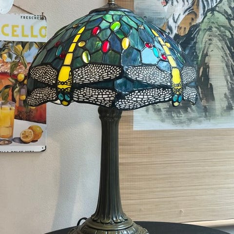 Lampe - Tiffany style - Dragonfly - Farvet glas