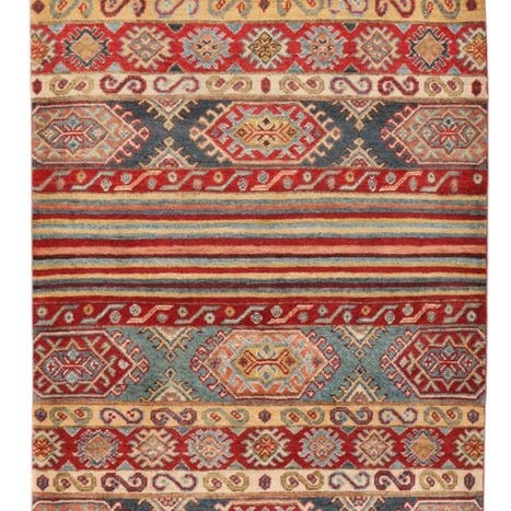 Kazak-tepper fra Pakistan er håndknyttede tæpper, der oprindeligt er inspireret af de nomadiske stammer i Kaukasus. De kendetegnes ved deres kraftige farver, geometriske mønstre og traditionelle symbolik. Typiske farver er rød, blå og beige, som er fremstillet med plantefarvning. Tæpperne er lavet af kvalitets uld, hvilket giver dem en robust og holdbar struktur. Kazak-tepper er populære både på grund af deres æstetiske skønhed og deres holdbarhed.
