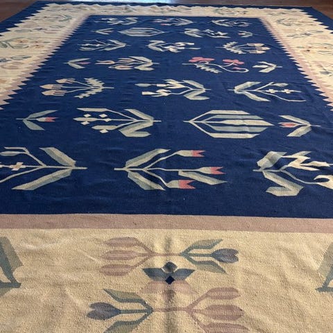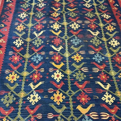 Vintage kilim-tæppe i uld, 200x150 cm, håndlavet, lavet i Tyrkiet, i fremragende stand.