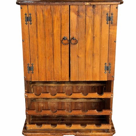 Mekanisk vinkøleskabsstand med drejemekanisme på træfod. Dette antikke stykke stammer fra den Edwardianske æra 1900-1920. Det drejer godt og glat.