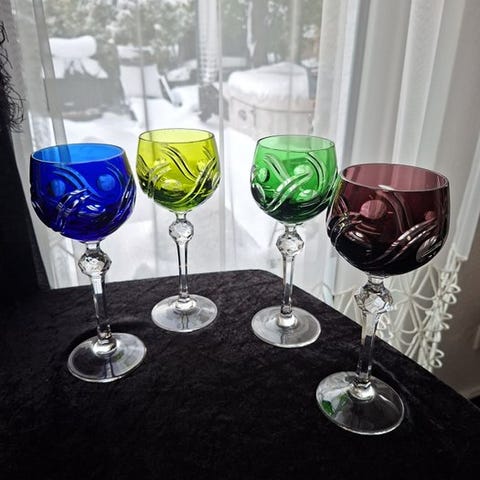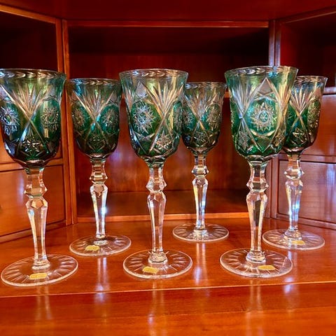 Vidunderlig aperitifservice i massivt krystal i art déco-stil.