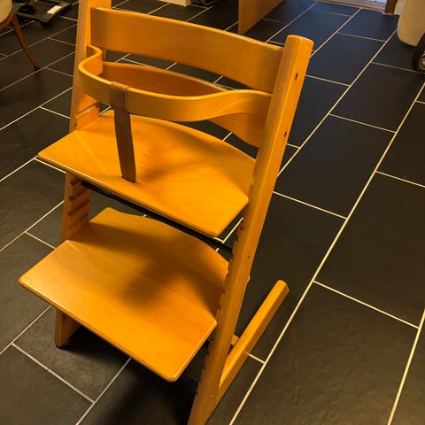 Fin stabil højstol fra stokke. Har brugsspor/ lidt skrammer men overvejende pæn stand pga af størrelsen og vægten er afhentning at foretrække