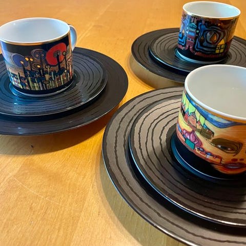 De angivne dimensioner svarer til en kop, vægten til koppen og dens underkop. Underkopperne har en diameter på 10,5 cm.