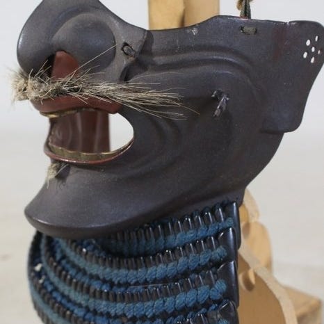 Forarbejdet sort lakkeret smedet jern Ikada Haidate fra samurai Yoroi, 52 cm høj, 64 cm bred, vejer 850 g, fra Japan, i rimelig stand. Klik på den blå "gå til varen" knap, for at købe eller byde på denne vare. Den samlede pris vil blive vist inden du afgiver dit bud.