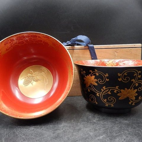 Dette er et sæt af fire trælakkerede skåle lavet i Meiji- til Taisho-perioderne.