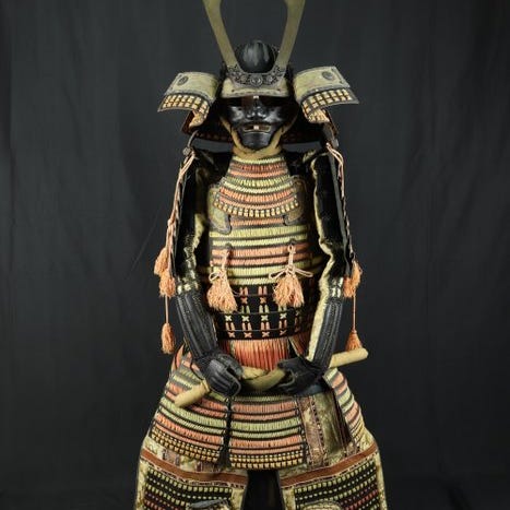 Yoroi fuld samurai-rustning fra Edo-perioden (1600-1868), fremstillet i Japan, af silke, kobber og jern, måler 60 cm i bredden og 160 cm i højden og er i god stand. Klik på den blå "gå til varen" knap, for at købe eller byde på denne vare. Den samlede pris vil blive vist inden du afgiver dit bud.