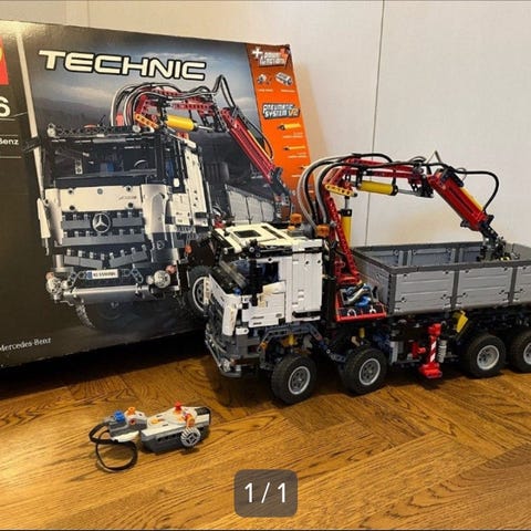 Lego Technic-sæt 42043 Mercedes-Benz Arocs 3245, komplett og ubrugt, i den originale forseglede æske med intakte låse der viser opbevaringsmærker; udgået af produktion. Klik på den blå "gå til varen" knap, for at købe eller byde på denne vare. Den samlede pris vil blive vist inden du afgiver dit bud.