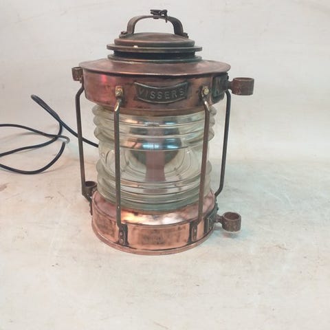 En toplyse i rødt kobber fra Amsterdam, Nederlandene, dateret ca. 1930-1940, af kobber, i god brugt stand med mindre tegn på alder, i funktionsdygtig stand, mål 38 cm høj, 30 cm bred, 30 cm dyb, vægt 6,5 kg, med ny fatning og kabel, egnet som indretning til hjemmet. Klik på den blå "gå til varen" knap, for at købe eller byde på denne vare. Den samlede pris vil blive vist inden du afgiver dit bud.