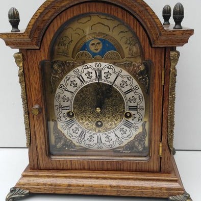 Vanhool bordureur med otte dages mekanisk værk, kobberhus nickelbelagt, uden slag, mål 14,5 × 14,5 × 5 cm, vægt 442 g, woundningsnøgle medfølger, oprindelse Belgien, dateret 1955–1960, i god brugt stand og i funktion. Klik på den blå "gå til varen" knap, for at købe eller byde på denne vare. Den samlede pris vil blive vist inden du afgiver dit bud.