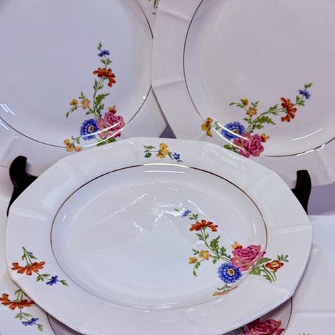Bordservice, et vintage 15-delt sæt. Underfad, tallerken, chargerplade, skåle, glasunderlag, borddækningssæt