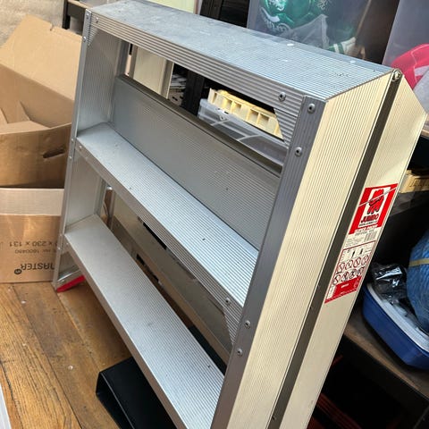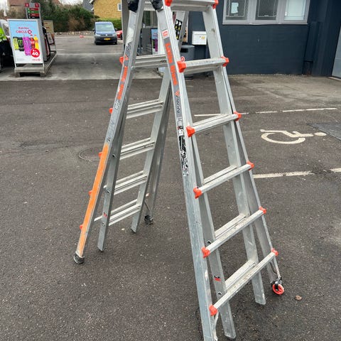 Little Giant Jumbo stige med sikkerhedstrin. Produktet leveres i original emballage og er designet til at give stabilitet og sikkerhed ved brug.