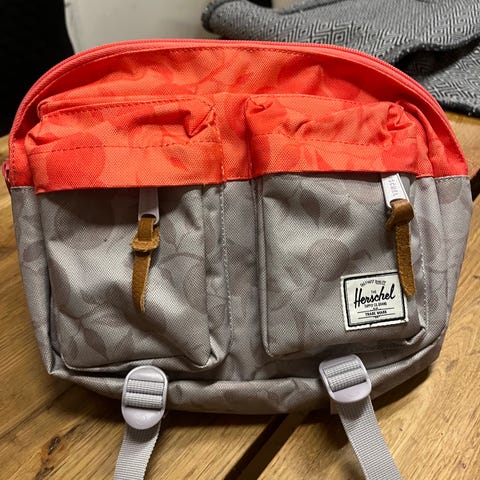 Herschel stof taske designet til unisex brug. Tasken har et rummeligt indre med en lyserød og hvid stribet foring. Den sorte ydre farve og stofmateriale gør den velegnet til daglig brug.