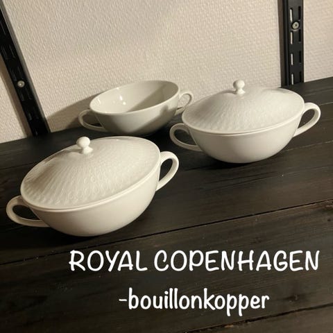 7 hvide bouillonkopper fra Royal Copenhagen, 1. sortering, i perfekt stand. Underkopper mangler. Stykpris 40 kr., sælges evt. samlet for 200 kr.