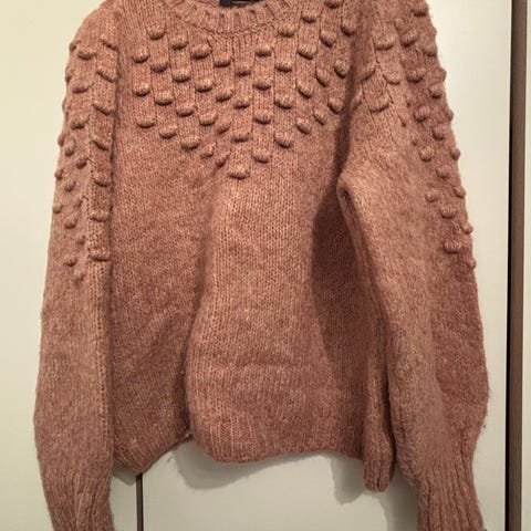 100% acryl. Længde 51,5 cm Brystmål 112 cm. En lille smule nusset (se billederne)