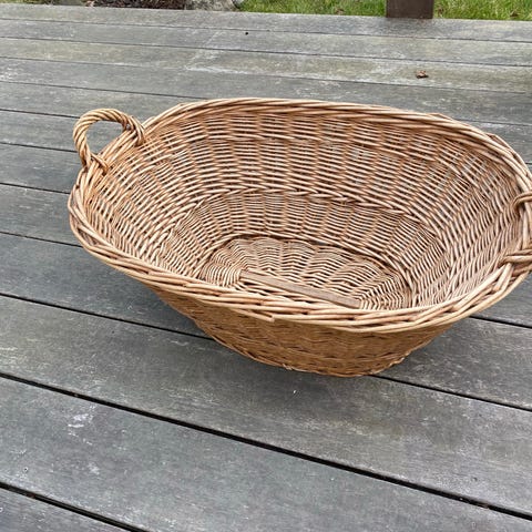 Lækker stor vintage fletkurv i fransk landstil / skandinavisk minimalisme - kan bruges til legetøj, vasketøj, bamser brænde , tæpper mm Har patina, men er i rigtig flot stand