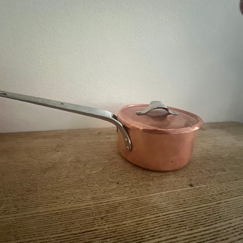 Smørnæb/ lille kasserolle i kobber og med hank i stål fra serien Taverna. Idel til dressinger eller sauce béarnaise.