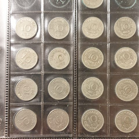 Sælger danske 10 øre i perioden 1924-1959 i ok stand. Både 10 øre 1933 og 1941 uden hjerte samt 10 øre 1959 til salg.