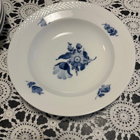 Blå blomst flettet dyb tallerken 23 cm - 8106