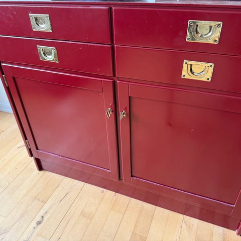 Brugt retro rød kommode. Kommode intakt m brugsspor og spor af at være fra 70’erne
