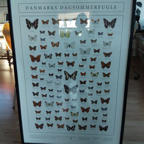 Plakat med danske dagsommerfugle - 70 x 100 cm