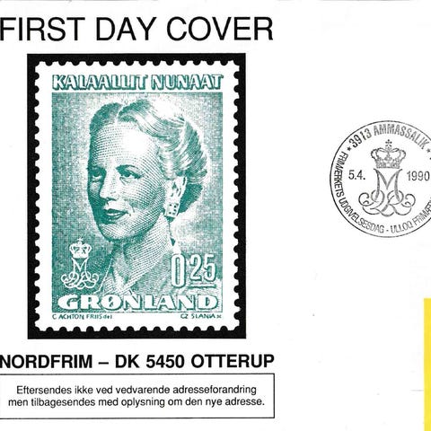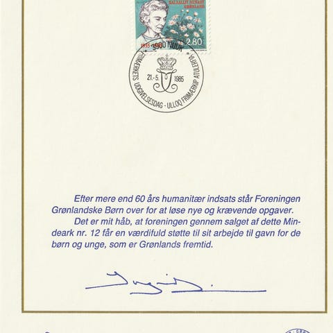 Førstedagsmappe 1980-1989 Frimærker, Grønland, sign. Jonathan Motzfeldt