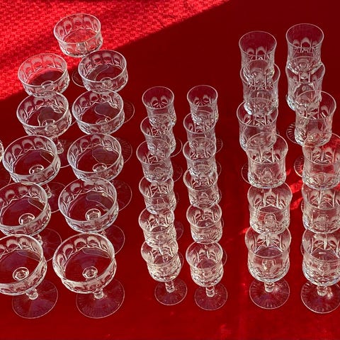 Forfinet tyndt krystalglas. Klokkeformet balje med køn stilk. Elegant slebet, graveret motiv af stjerner.