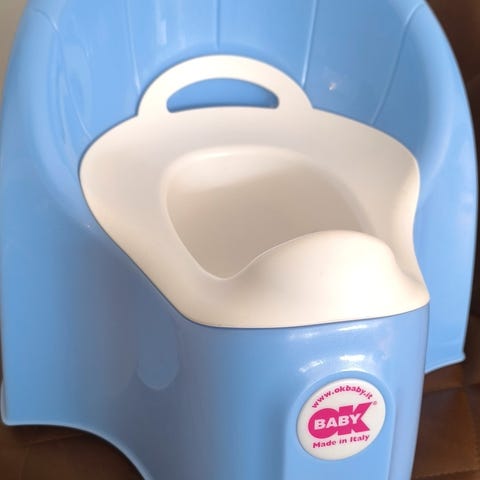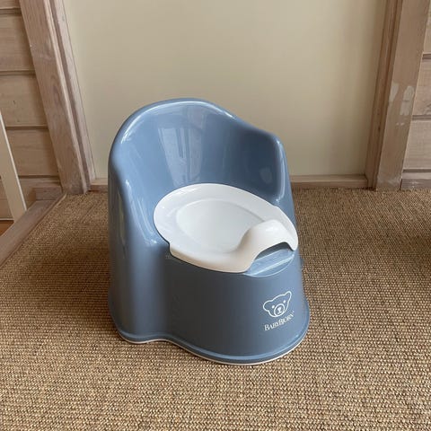 Buubla foldbar potte (foldable potty), i farven snehvid, med lysegrå detaljer. Med original emballage. Har lagt i min datters rygsæk i et par dage, men aldrig blevet brugt, er derfor som ny.