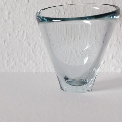 Forårsbebudere, lysestage, silkeblomst etc. Tydeligt blåtonet. Antageligt inspireret af Holmegaard Per Lütken Laguna serien fra 50'erne som aida vaserne elr Muurla tulipan vaserne bølgevase. Lyngby Glas