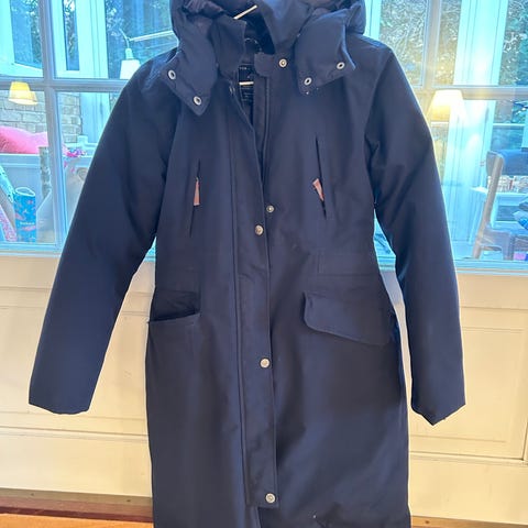 Mørkeblå dunjakke med 90/10 andedun, vandtæt og åndbart yderstof. Aftagelig hætte. Style nr. 706.