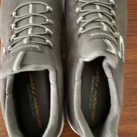 Skechers Sneakers i størrelse 40. Skoene er sorte med hjerter i "sølv" og "guld" Fremstillet i syntetiske materialer med snørelukning. Velegnede til daglig brug.
