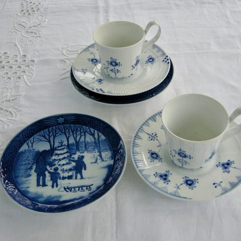 De skønneste sidetallerkner til julebordet med hyggelige julemotiver og den ægte dybe koboltblå farve. Flotte i selskab med de Kongelige Royale blå stel som Element, Mega og Musselmalet.