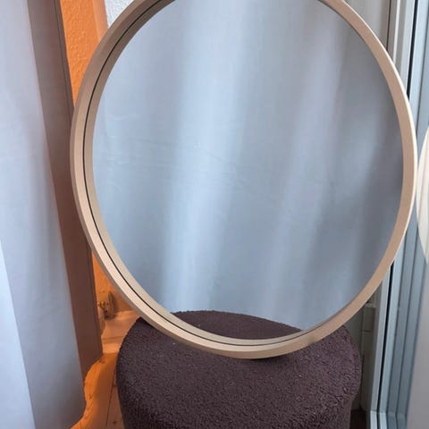 Pænt rundt spejl til at hænge i en strop