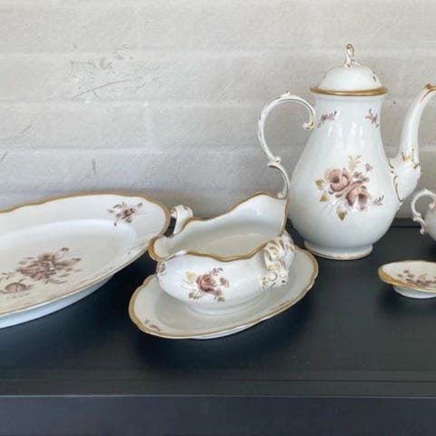 1 stk Multifunktionel Rigt dekoreret m. generøs flot bladguld. Romantisk Oldemorstel m. blomster.