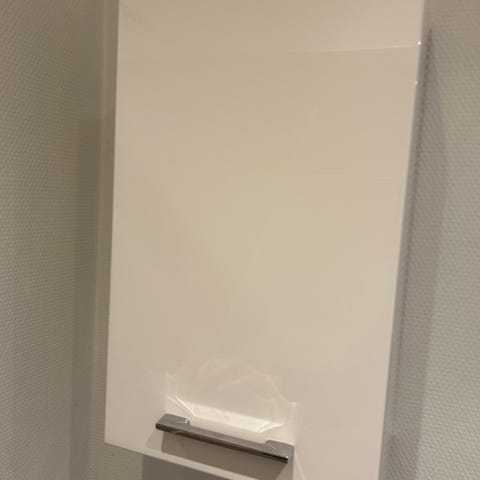 Hvidt vægskab med spejldør og hylder