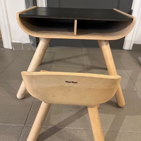Borden har brugsspor, pladerne kan tages af og der er opbevaring plads, kan bruges til perler, Lego, tegnesager m.m