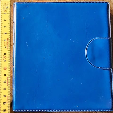 En medicinorganiserer med et blåt cover, der indeholder syv sektioner, hver dedikeret til en ugedag. Hver sektion har separate rum til morgen, middag, aften og nat, hvilket gør det nemt at planlægge medicinindtag gennem hele dagen. Organisatoren har en kompakt størrelse på 16x14x4 cm. Det ydre cover beskytter de individuelle rum indeni og lukkes med en flap.