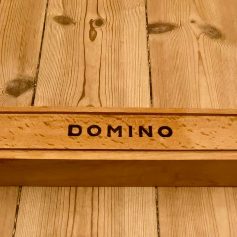 Antikt Dominosæt i trææske (str. 4x26x6 cm)
