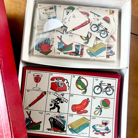 Antikrt billedlotteri spil (str. 2x22x15 cm)