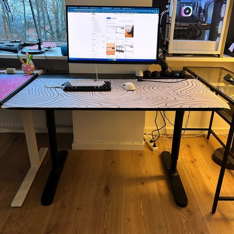 Der er kabelindgang i bordet, som skjuler kablerne pænt væk. Desuden sidder en usynlig kabelskjuler fastmonteret under bordet.