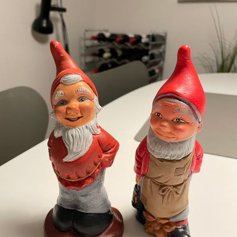 Stor samling nisser. De fleste er bisquit nisser, men jeg kan være i tvivl om alle er det. De sælges kun samlet