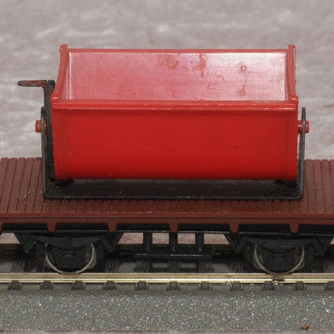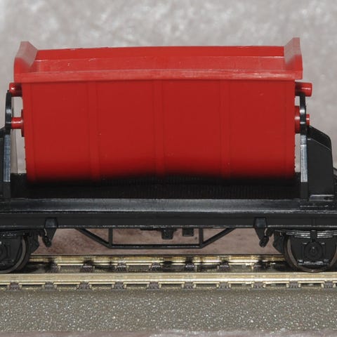 Vognen er brugt. Bortset fra at en tap på til ladet er brækket af, fremstår nærmest som ny. Koblinger passer til Märklin bøjlekoblinger.