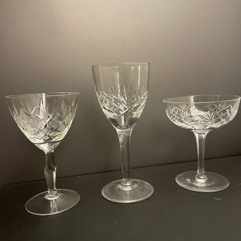 Flotte krystalglas med udskæringer 5.stk. Øl/drinkglas. Højde 14.cm. dia.7.cm. Sælges for 50kr. stk.