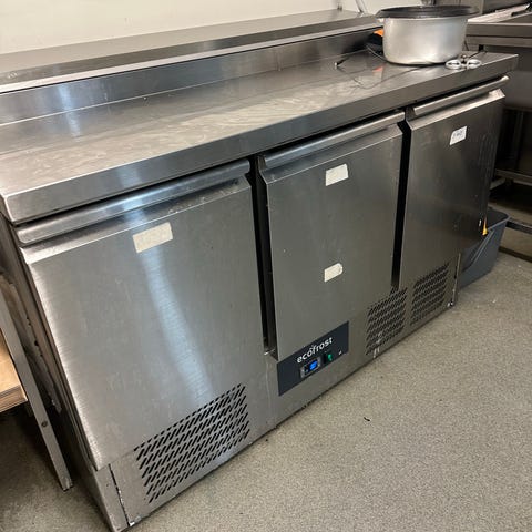 Underbordet har rummelige kølerum med justerbare hylder, så der er god plads til råvarer, forberedelser og opbevaring. Den robuste bordplade giver en stabil arbejdsflade, perfekt til daglig drift i et travlt køkken.
