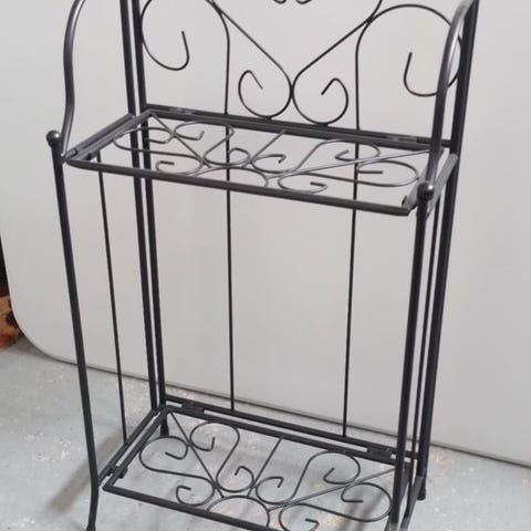 Metalhylde med dimensionerne 40x12x6 cm, inkluderer monteringsbeslag pakket i plastik. Hyldens design består af parallelle stænger og er ideel til opbevaring eller dekoration.