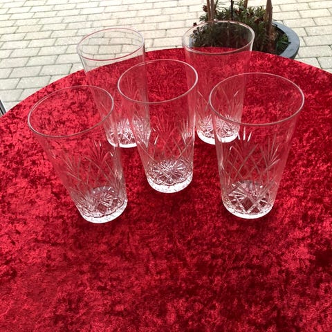 Flotte krystalglas med udskæringer 6.stk. Portvinsglas, højde 13.cm. dia.5,5cm. Sælges for 45kr. stk.
